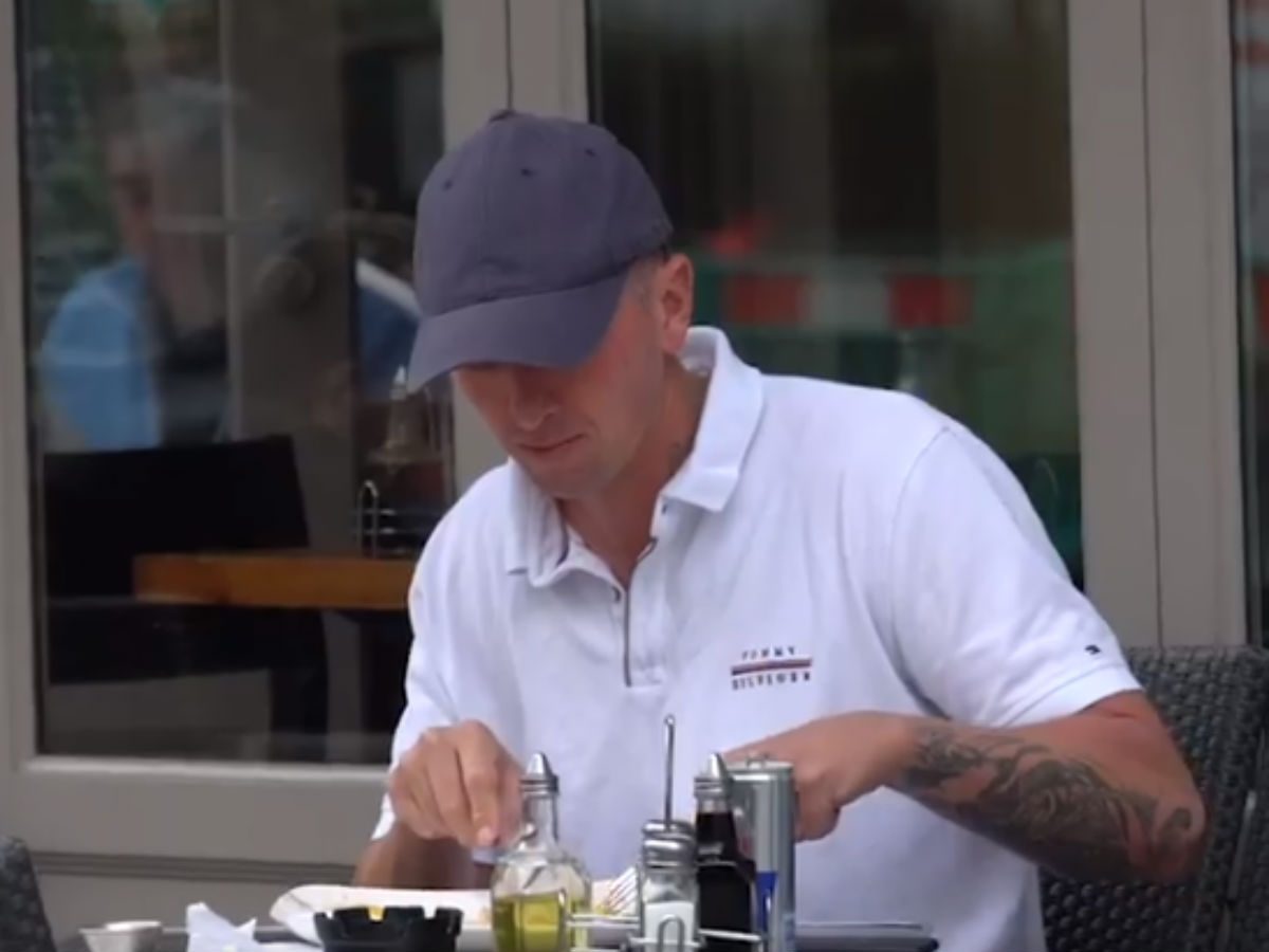 В Сеть попало видео, на котором Джонс, сидя на открытой террасе отеля, ест жаркое, пьет пиво, курит и весело общается с окружающими.
