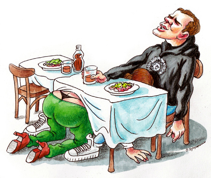 А уж на вопрос прокурора «спускалась ли девушка под стол, чтобы изобразить имитацию половой ласки» и вовсе ответил: «Не помню».