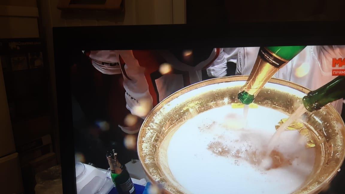 Как отмечает обозреватель после победы в раздевалке ЦСКА «царил карнавал». Музыку спортсмены не включали – ее заменили хлопки шампанского и подбадривающие крики: «Серега, открывай!», «Серега, наливай!», обращенные к капитану команды Сергею Андронову. Игроки наполняли Кубок игристым напитком.