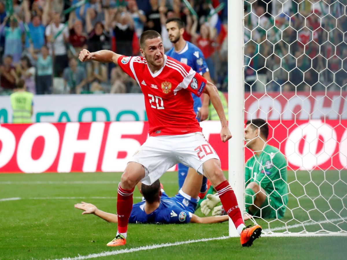 Стартовый состав сборной России: Гильерме, Джикия, Семенов, Кудряшов, Фернандес, Зобнин, Головин, Оздоев, Ан. Миранчук, Ионов, Дзюба.