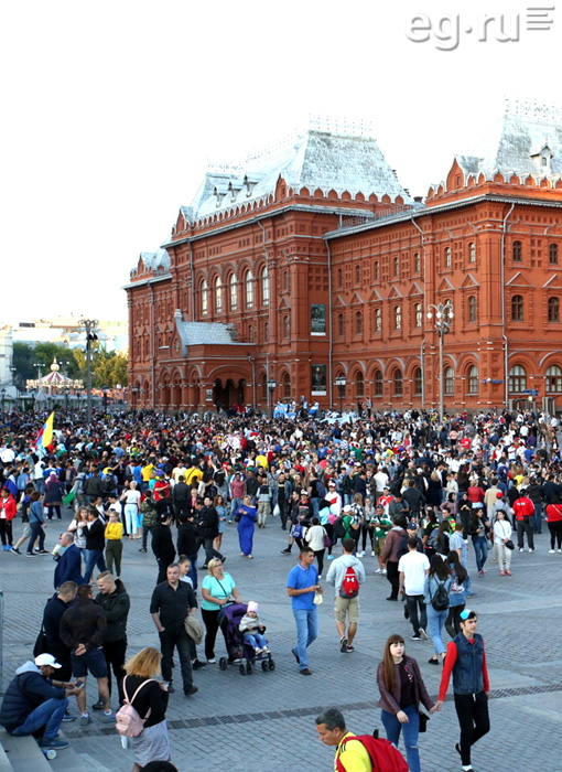 К Красной площади не пробраться. На Манежной пытаются перекричать друг друга болельщики Бразилии, Аргентины, Мексики. На прилегающих улицах все гости мундиаля уже вперемешку — на километры на все четыре стороны от Кремля отныне сплошная фанзона.