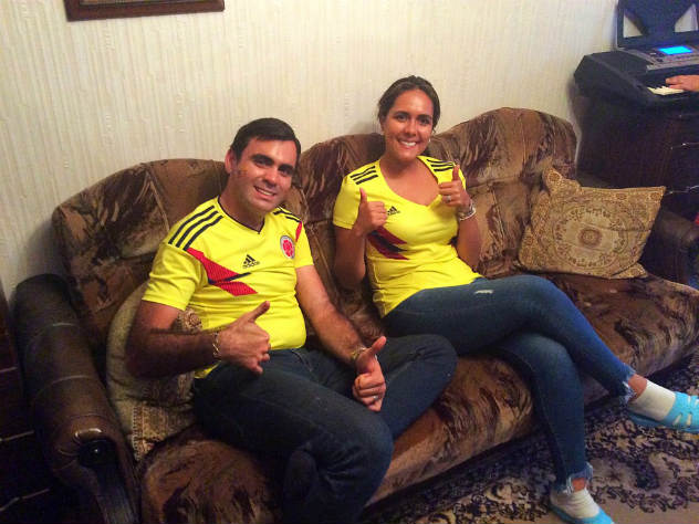 Во время путешествия по Европе новобрачные Руеда решили поболеть за сборную своей страны и заехали на несколько дней в Россию. По приезду в Саранск выяснилось, что гостиницу они забронировали в 130 километрах от стадиона, где будет проходить матч Колумбия-Япония.