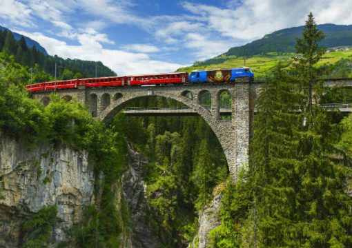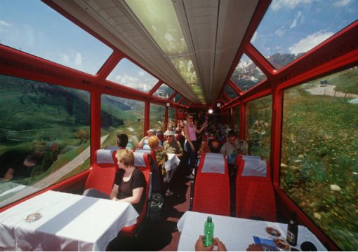 В горах Швейцарии можно покататься не только на лыжах, но и на поезде под названием Glacier Express. Возможно, кто-то заскучает в этом поезде, ведь он проходит расстояние в 300 километров за целых 8 часов, однако для любителей красивых пейзажей это время пролетит быстро. В поезде для этого специально установлены огромные панорамные окна. Glacier Express курирует по горным районам Швейцарии, а маршрут проходит через красивейшие места.