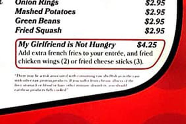 В американских заведениях фастфуда появилось предложение под названием My Girlfriend Is Not Hungry («Моя девушка не голодна»). Его раскритиковали за сексистское название, но, благодаря своей популярности, оно перекочевало и в другие кафе и рестораны. Об этом пишет