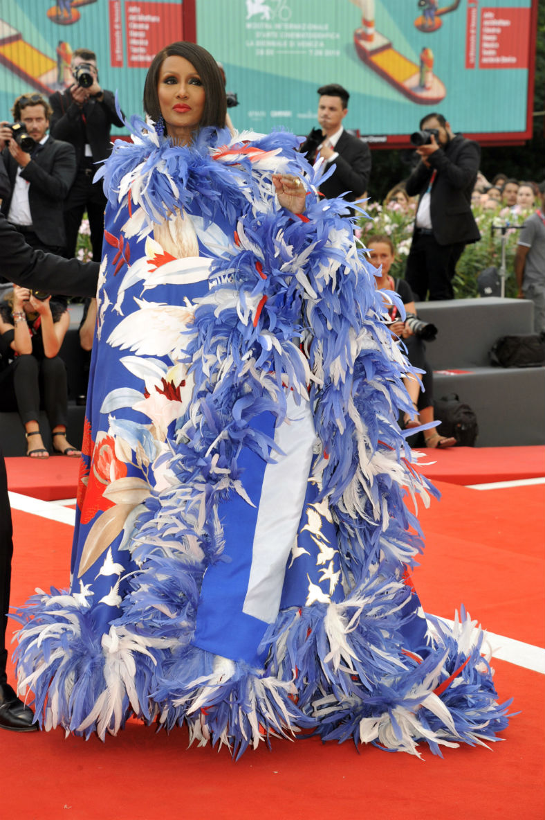 Ближе к ночи повседневные look’и сменились вечерними платьями — не обошлось на открытии Венецианского фестиваля — 2019 без провокаций. Пожалуй, самый откровенный наряд выбрала Эльза Хоск, появившись на дорожке в черном платье с открытой спиной и оголенным животом. Компанию диве составили другие модели — Изабели Фонтана в не менее откровенном туалете, Иман в перьях и Марта Хант, обнажившая длинные ноги.
