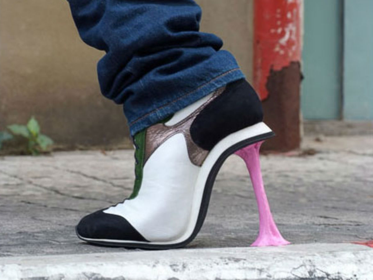 Как и эти туфли с каблуками в виде прилипшей к подошве жвачки.