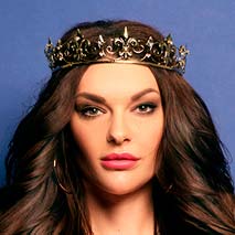 Берет красивого синего цвета интересный, но зачем он здесь? В образе Екатерины достаточно ярких акцентов, начиная от пальто и заканчивая цветом помады, а головной убор лишает образ необходимой легкости и выглядит слишком театрально. Массивный чокер, слишком мрачный для этого комплекта, я бы рекомендовала надевать исключительно с глубоким декольте или с распахнутой блузкой — в сочетании с футболкой с обычным круглым вырезом он визуально укорачивает шею.