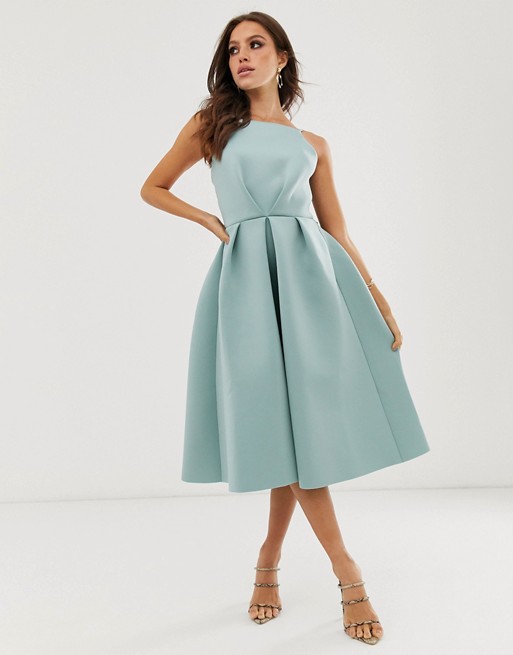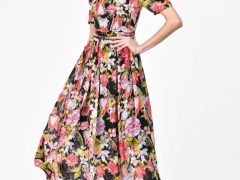 Теперь о платье. Чтобы избежать эффекта увеличения бедер, стоило отказаться от плиссировки или сделать складки на юбке более ниспадающими и свободными. В целом платье в стиле пин-ап относится к стилистике 50-х годов и замечательно подходит для вечерних выходов и праздничных мероприятий, а декольте с запахом визуально стройнит.