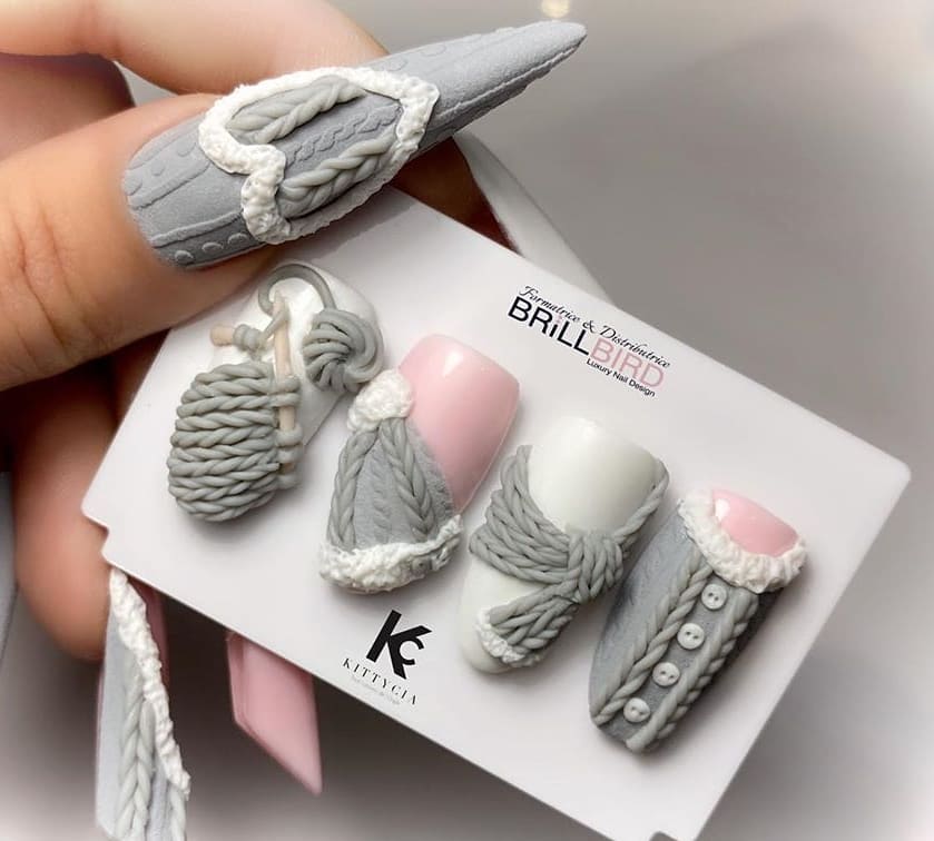 Объемный дизайн, имитирующий узор свитера крупной вязки, слово в nail-арте не новое и, признаться, уже поднадоевшее. Но обладательница следующего маникюра явно против тенденции и не собирается расставаться с «уютными» ногтями.