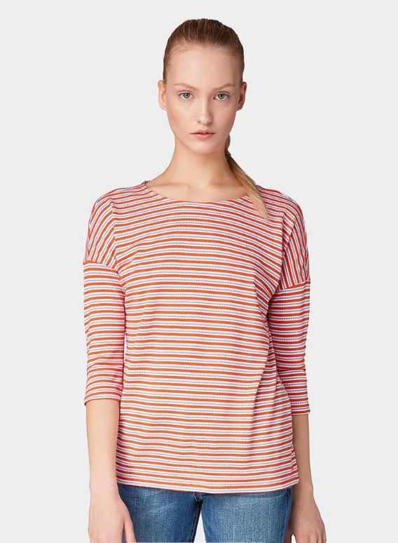 Горизонтальные линии отсылают к морскому стилю, вполне уместному в повседневной одежде. Полоска может быть не только красной, но и синей, зеленой, фиолетовой — выбирайте подходящую под цветотип.